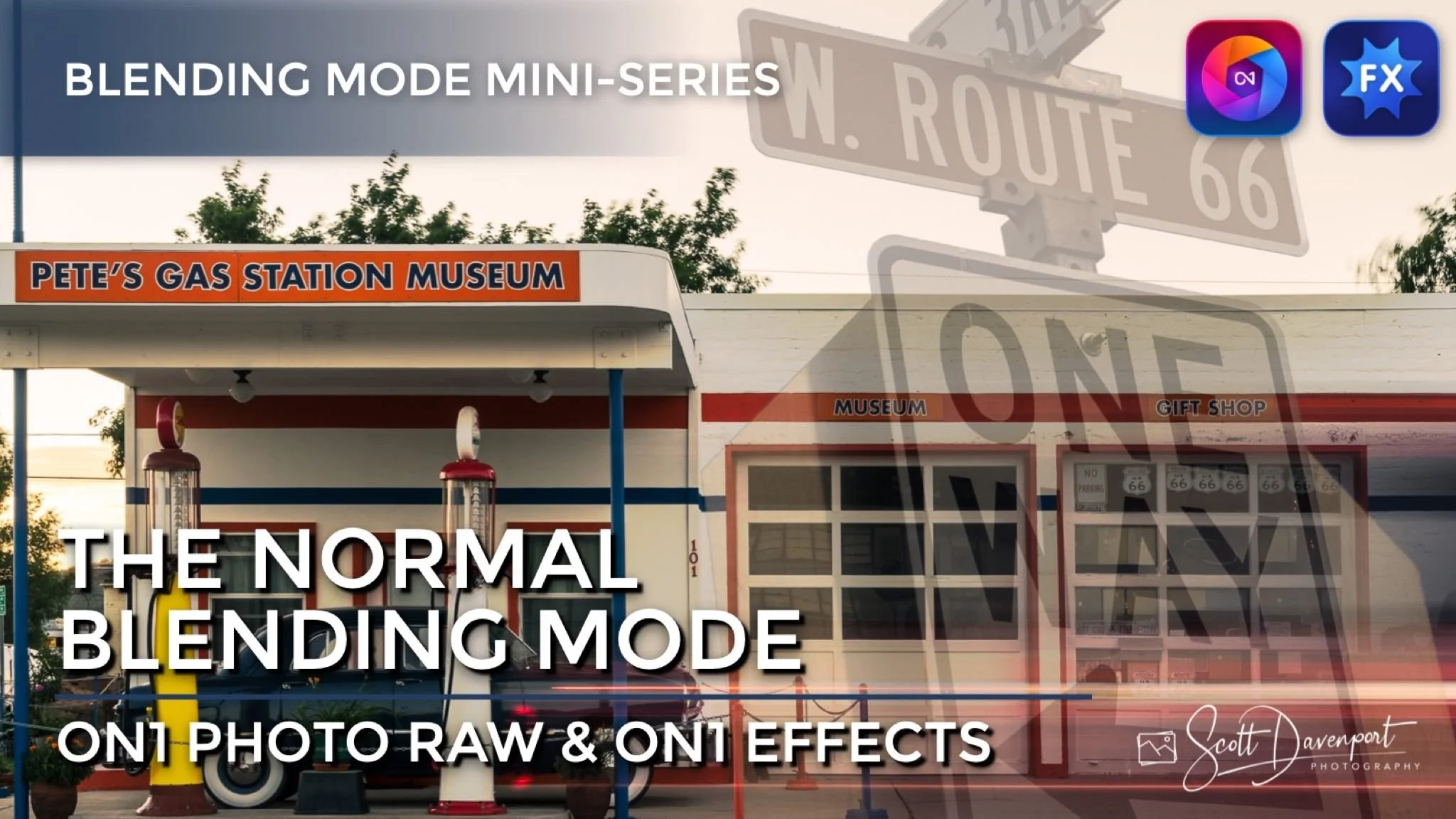 In the example here, I masked a street sign and layered it on top of a vintage style gas station. The lower opacity of the street sign creates the double exposure look.